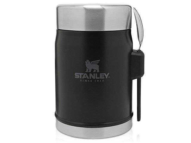 Банка для еды объемом 400 мл с ложкой-вилкой Stanley Legendary - черный матовый