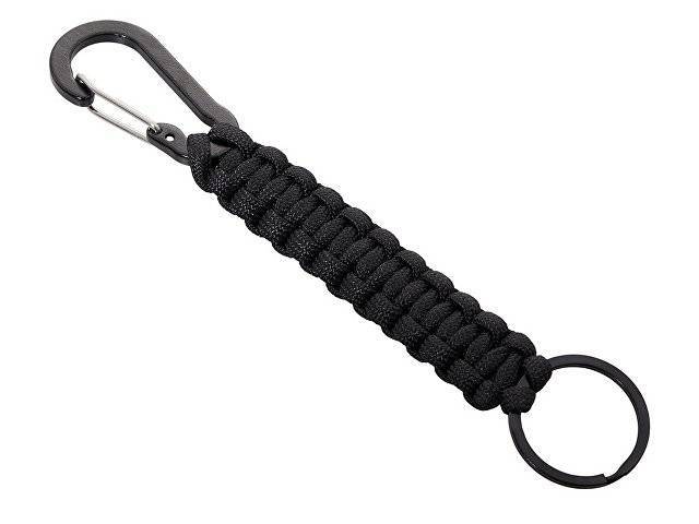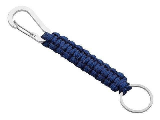 Брелок-веревочка "Austere" с карабином и кольцом, темно-синий с серебристым