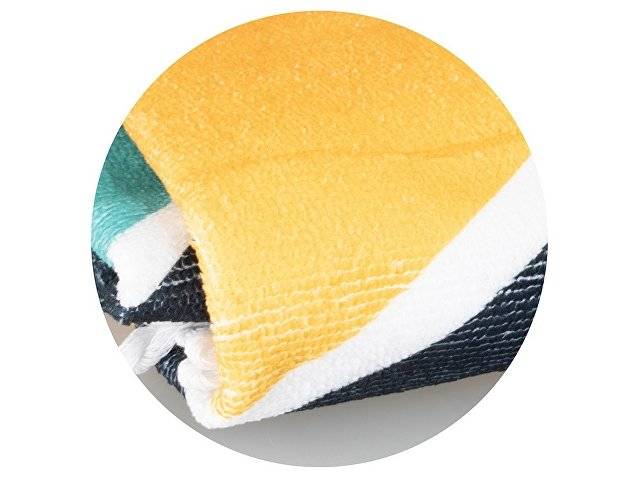 Модное круглое пляжное полотенце с бахромой диаметром 150 см изготовлено из быстросохнущего полиэстера плотностью 240 г/м2 с возможностью полноцветной печати. Бахрома полотенца может быть изготовлена в белом или черном цвете по желанию клиента.