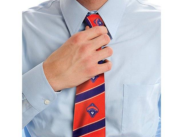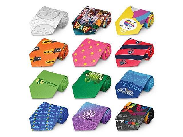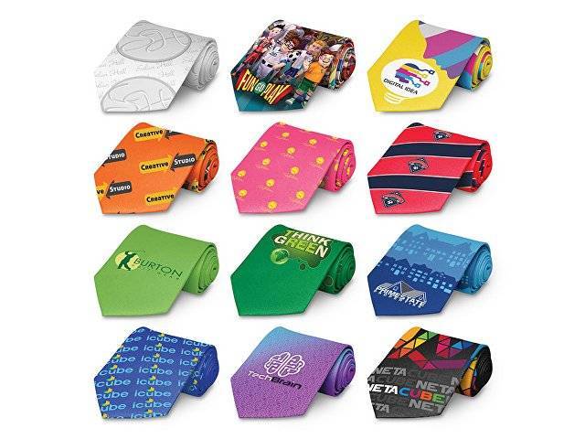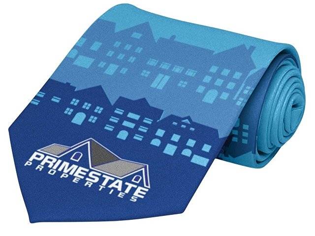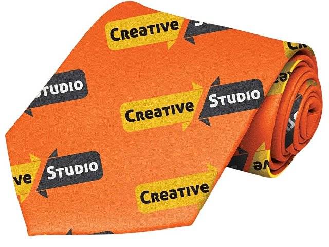 Галстук классической формы, выполнен из полиэстера, что позволяет наносить на него полноцветную печать "в край" методом сублимационной печати.