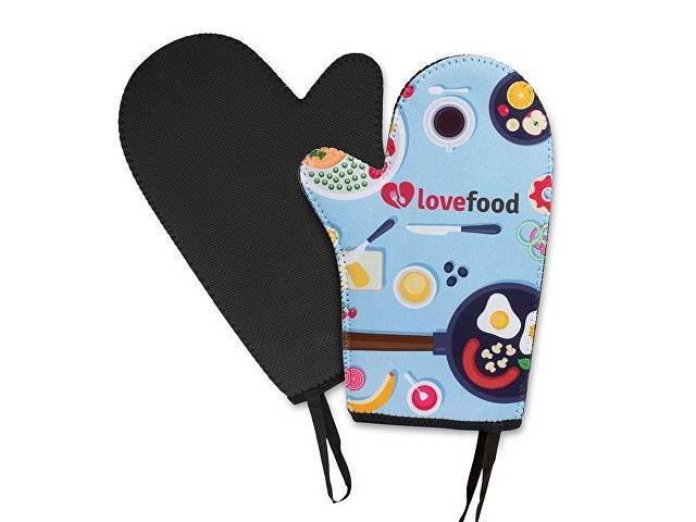 Плотная защитная рукавица-прихватка изготовлена из термостойкого неопрена с возможностью полноцветной печати с одной стороны. Доступные цвета: белый, черный.