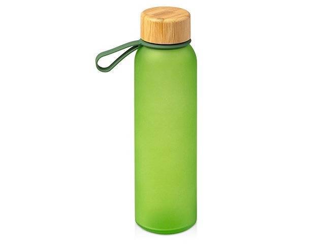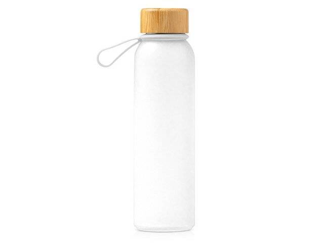Полупрозрачная бутылка из переработанного стекла. Бамбуковая крышка с держателем. Объём: 500 мл. Поставляется в индивидуальной коробке.