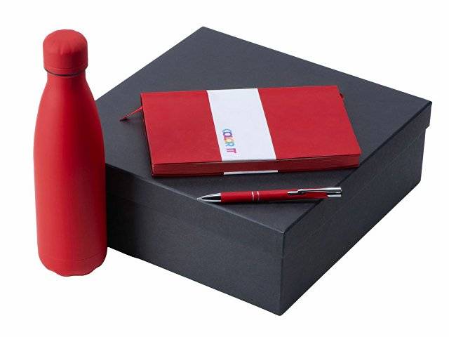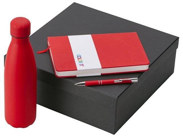 Подарочный набор с блокнотом С1, металлической ручкой и термобутылкой, красный