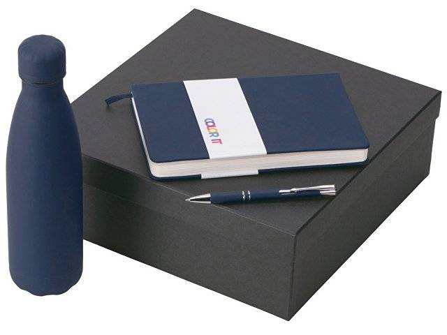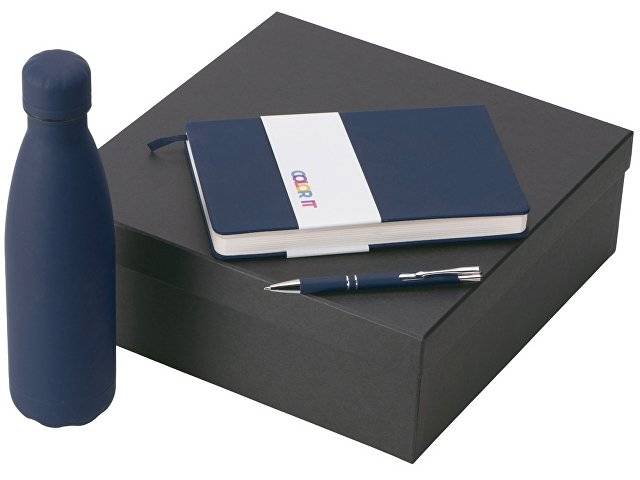 Подарочный набор с блокнотом С1, металлической ручкой и термобутылкой, темно-синий