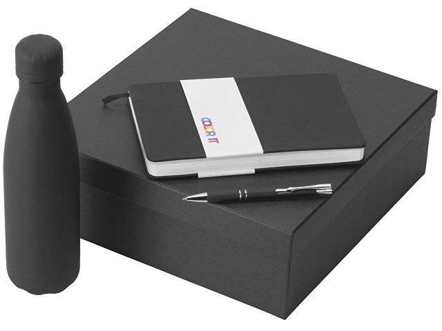 Подарочный набор с блокнотом С1, металлической ручкой и термобутылкой, черный