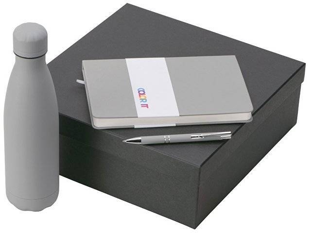 Подарочный набор с блокнотом С1, металлической ручкой и термобутылкой, серый