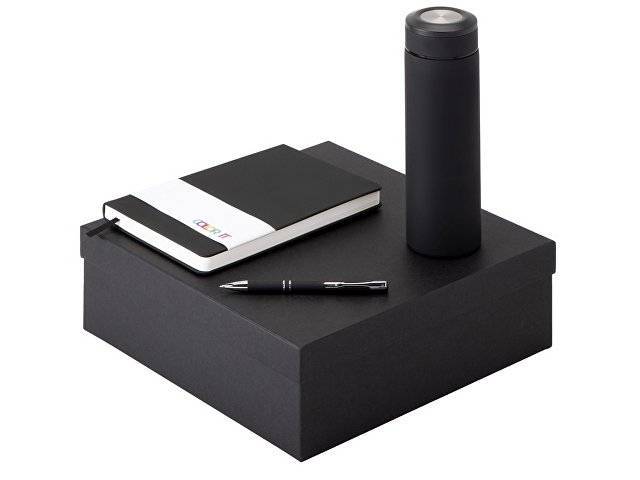 Подарочный набор с блокнотом С1, металлической ручкой и термосом, черный