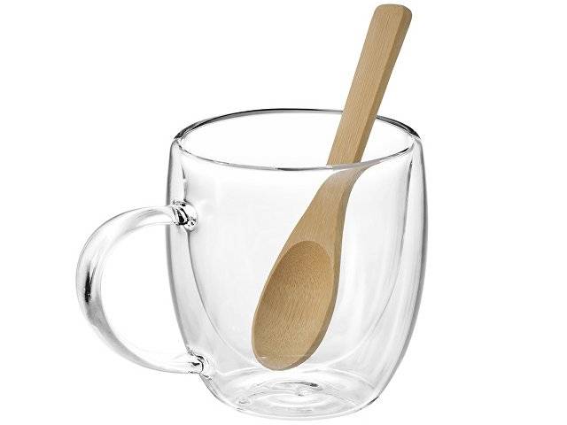 - Практичный комплект — кружка 250 мл, ложечка 13 см и удобная подставка 16×11,3 см.