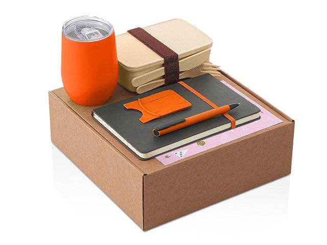 Набор с термокружкой, блокнотом, ручкой и ланчбоксом "Refreshment", оранжевый