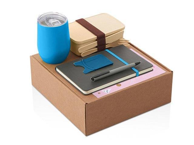 Набор с термокружкой, блокнотом, ручкой и ланчбоксом "Refreshment", голубой