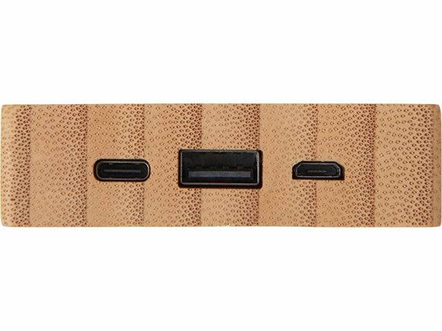 Внешний аккумулятор ёмкостью 10 000 мАч, созданный для тех, кто ценит стиль, функциональность и заботу о природе. Корпус устройства изготовлен из натурального бамбука и переработанного ABS-пластика — это не только придаёт ему уникальный эстетичный вид, но и снижает экологический след. С одной стороны — солнечная панель, позволяющая подзаряжать устройство от солнца, с другой — панель с возможностью нанесения светящегося логотипа компании или бренда. Идеальное решение для путешественников, офисных сотрудников и корпоративных подарков — технологично, стильно и ответственно.
