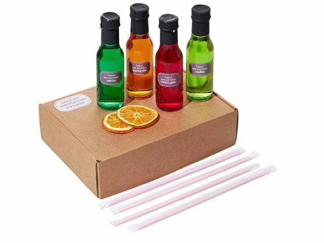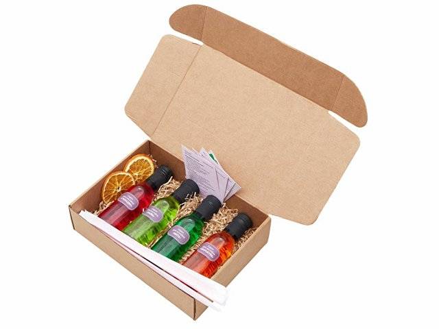 - 4 бутылочки сиропов по 100 мл с яркими вкусами: Лайм, Маракуйя, Мята, Гренадин – классика коктейльного бармена.