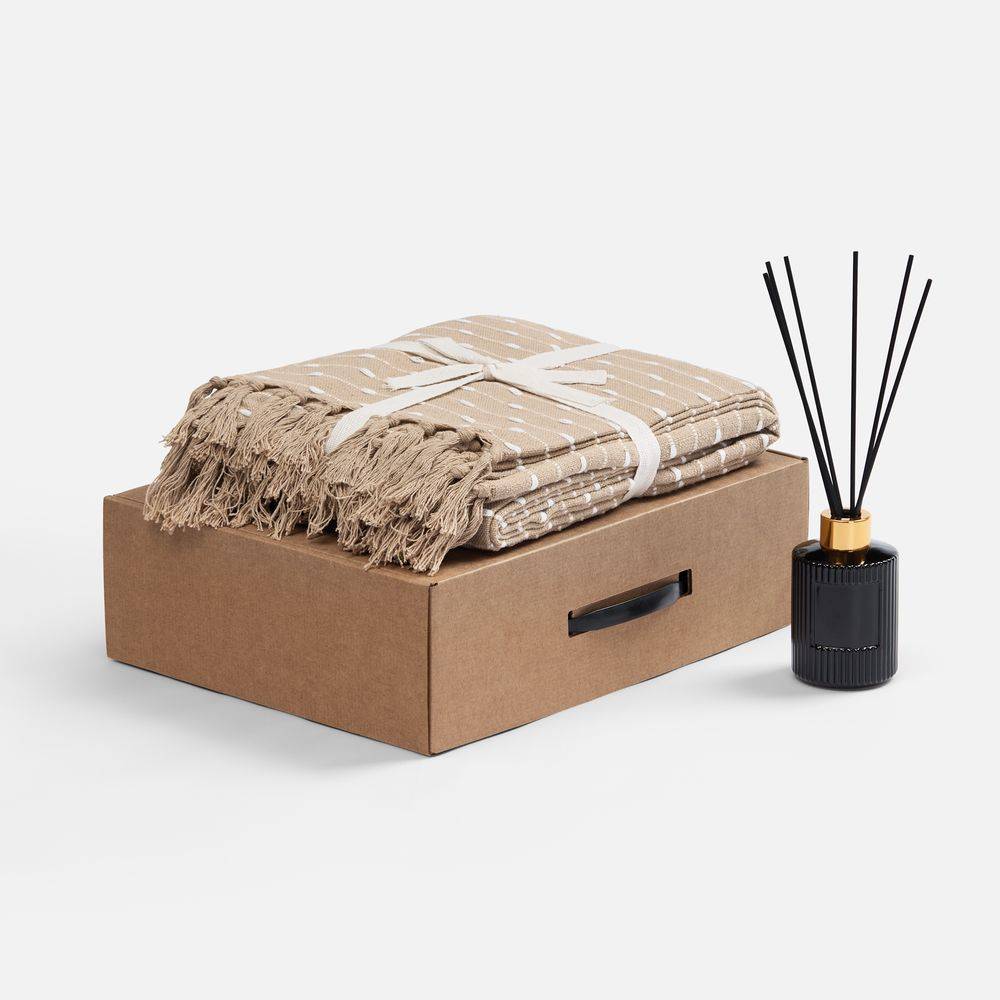 Набор Aliento — это мягкий плед и диффузор с гармоничным ароматом, созданные для того, чтобы забыть о суете и насладиться настоящим спокойствием. Элегантность, комфорт и ароматерапия в одном наборе — идеальный подарок для тех, кто ценит качество жизни.