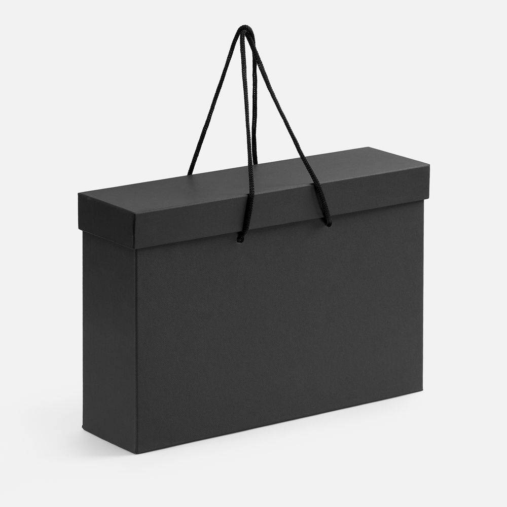 Изготовлена из переплетного картона, кашированного гладкой дизайнерской бумагой.