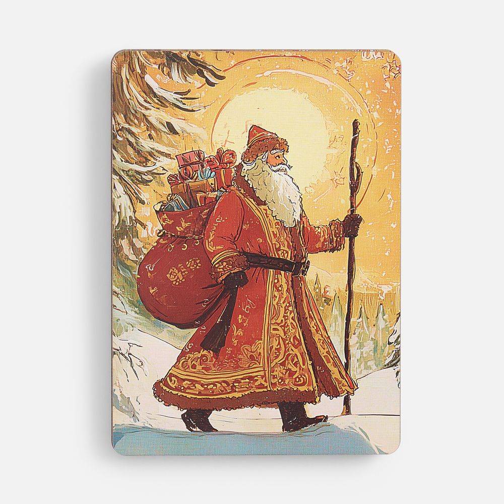 Пазлы изготовлены из дерева, а сама новогодняя картинка оформлена в открыточном ретростиле. В центре композиции — величественный Дед Мороз с богатым мешком подарков, символизирующий радость Нового года. Это не просто подарки, но и наступающий год, щедрый на все самое хорошее: радость, достаток и впечатления.