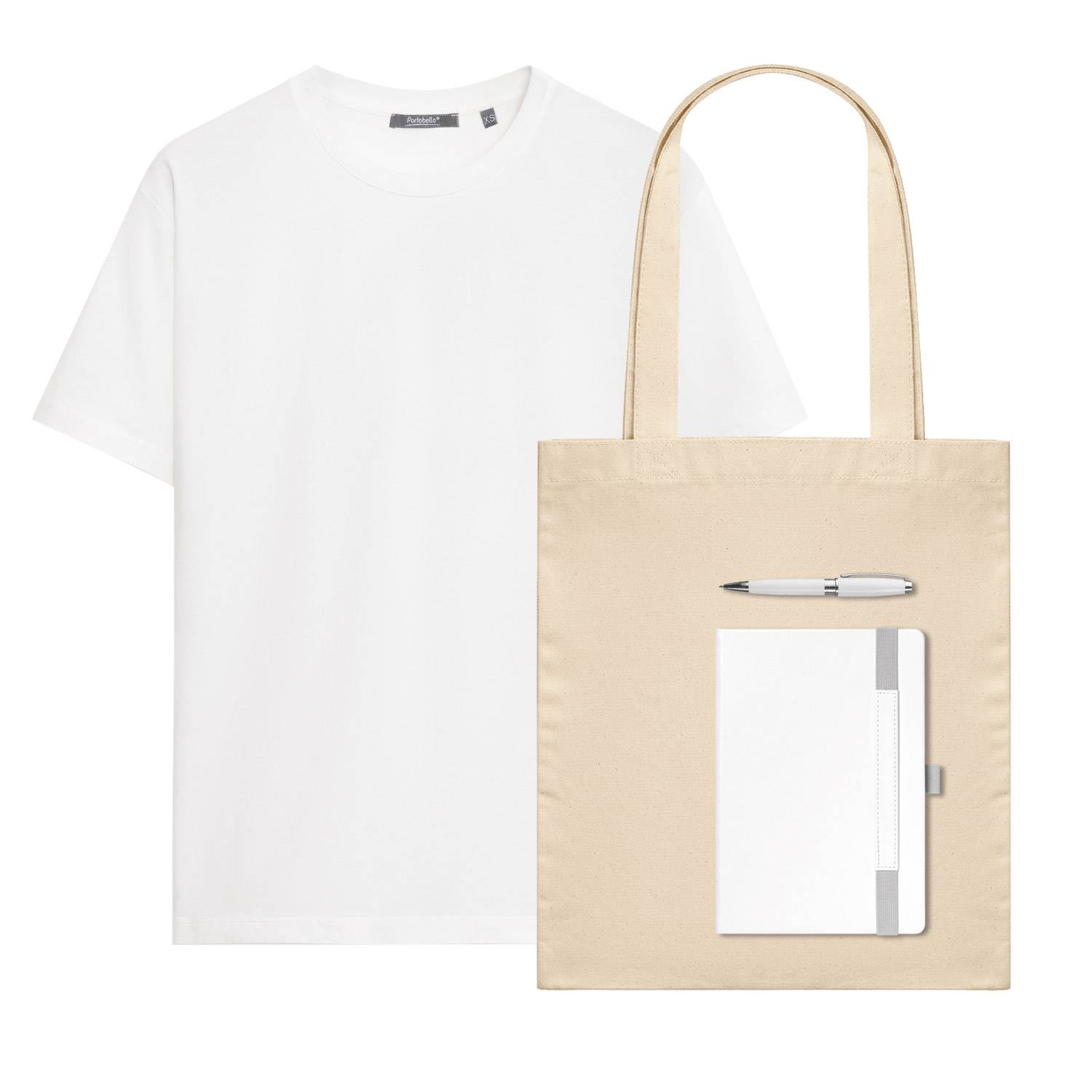 Набор с одеждой KRIS (футболка, ежедневник, ручка, шоппер), белый, M