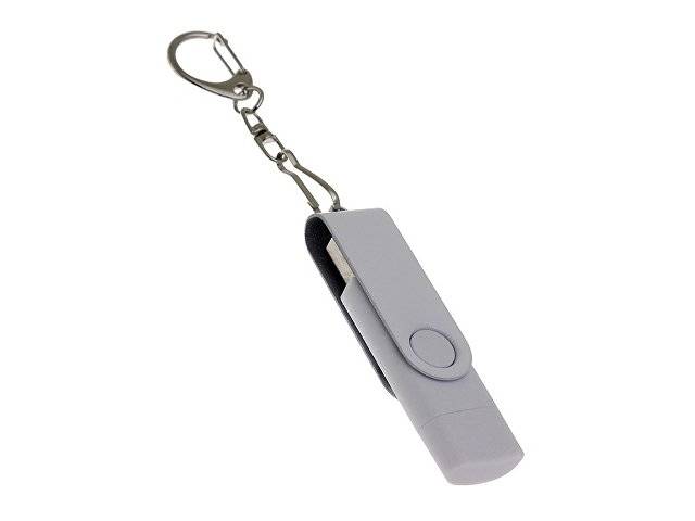Флеш-накопитель 2 в 1 поворотный механизм, c дополнительным разъемом Type-C с одноцветным металлическим клипом, объем памяти USB3 16 Гб. Пластиковый корпус.