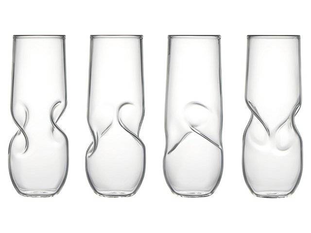 Два изящных бокала объёмом 260 мл поражают необычной формой — их поверхность слегка изогнута, создавая не только эффектный визуальный акцент, но и особое удобство: пальцы словно попадают в естественные «пазы», благодаря чему бокал идеально ложится в руку.