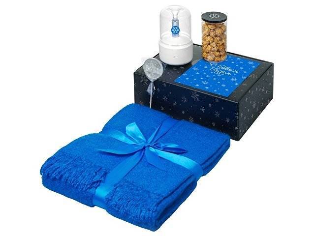 Подарочный набор с пледом, увлажнителем и попкорном, синий