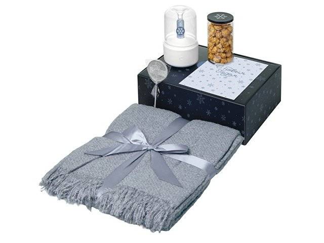 Подарочный набор с пледом, увлажнителем и попкорном, серый