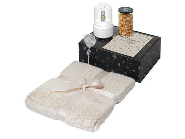 Подарочный набор с пледом, увлажнителем и попкорном, бежевый