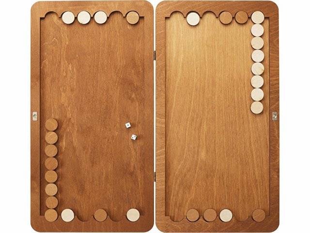 В комплект входят фишки из фанеры двух оттенков, гармонирующих с базовым цветом доски.