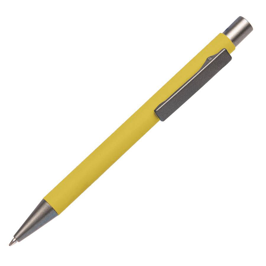 Ручка шариковая FACTOR, желтый/темно-серый, металл, пластик, софт-покрытие