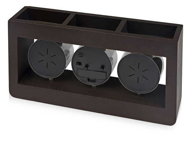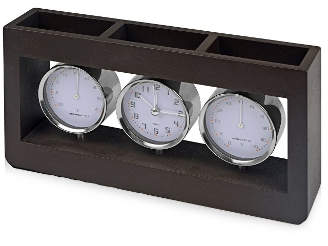 Замечательная погодная станция дополнит интерьер кабинета и поможет организовать порядок на рабочем столе. На верхней панели метеостанции расположены три отделения под канцелярские принадлежности, в одно из которых можно посадить настоящее миниатюрное растение. Метеостанция станет прекрасным подарком как для офисного сотрудника, так и для руководителя компании.