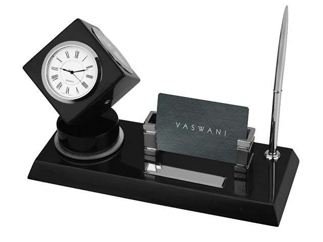 Настольный прибор с погодной станцией «Магдебург» - это настоящая метеостанция на вашем столе. В комплект настольного прибора входят: часы, термометр, гигрометр, держатель для визиток, ручка шариковая.