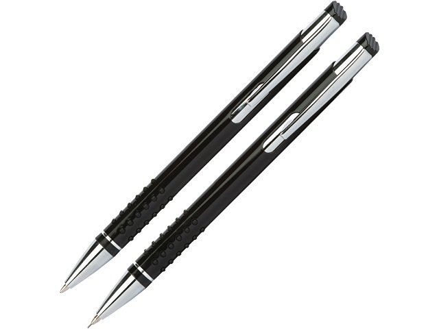 Набор письменных принадлежностей, состоящий из шариковой ручки с нажимным механизмом и механического карандаша, предлагается в компактном пластиковом футляре. На ручку, карандаш и футляр можно нанести логотип и подарить в качестве сувенира или небольшого презента клиенту компании.