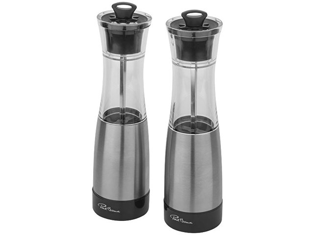 Набор для соли и перца Duo. Набор из двух мельниц с керамическим механизмом. Приводятся в движение вручную. Соль и перец не включены в набор. Набор упакован в коробку Paul Bocuse. Эксклюзивный дизайн. Нержавеющая сталь и акрил.