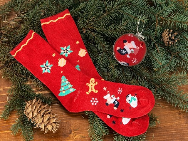 В фильмах на рождество принято вешать носки над камином, в которые Санта Клаус раскладывает подарки. Предлагаем вам новинку нашего каталога адаптированную для российской елки. Носки, упакованные в милый шарик, можно повесить на елку в качестве дополнительного подарка. Оригинальный дизайн с тематическими рождественскими принтами порадует как хипстера, так и приверженца офисного стиля. Яркие носки со строгим костюмом один из современных трендов. Дарите стильные новогодние подарки.