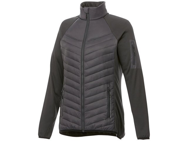 Женская утепленная куртка Banff. Внутренний противоветровой клапан и защита подбородка. Внутренний выход для медиапроводов. Удлиненная задняя часть изделия. Швы моделирующие фигуру и приталенный крой (женская модель).Манжеты-резинки контрастного цвета. Отделка контрастной тканью. Молния с контрастной лентой. Молния легкого скольжения. Петелька-вешалка. Комфортный ярлык-трансфер на изделии. 100% нейлоновая тканая матовая отделка 380T, водоотталкивающая и пухонепроницаемая ткань. Контрастная ткань: 94% полиэстер, 6% эластан с водоотталкивающей поверхностью. 38 г/м².