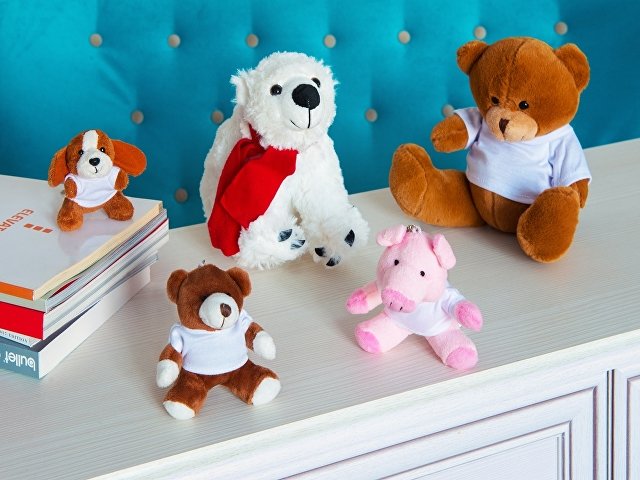 Брелок для ключей со свинкой - это милый и забавный подарок, способный поднять настроение каждому. Плюшевая мягкая игрушка понравится и детям, и взрослым. Идеально подойдет в качестве новогоднего подарка на год Свиньи. В комплекте идет белая футболка, на которую можно нанести принт. Плюш, хлопок.