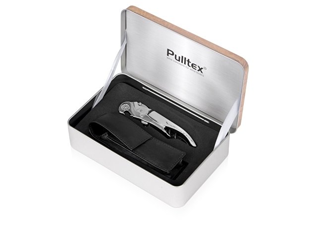 Готовое подарочное решение - это набор ClickCut Set от Pulltex. Он состоит из универсального штопора, футляра из натуральной кожи и подарочной металлической коробки с имитацией деревянного покрытия на внешней стороне. Штопор имеет запатентованную систему двойного рычага, что позволяет извлечь пробку с легкостью и не повреждая.
