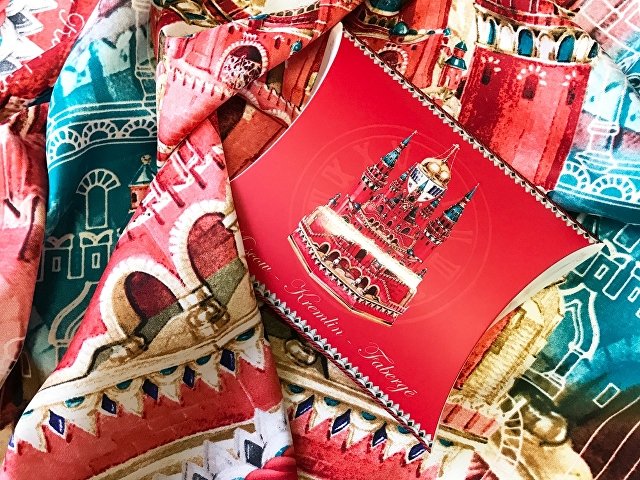 Платок "Кремль - Москва - Фаберже" от дизайнера Нины Ручкиной посвящён одним из самых красноречивых и ярких символов России.
