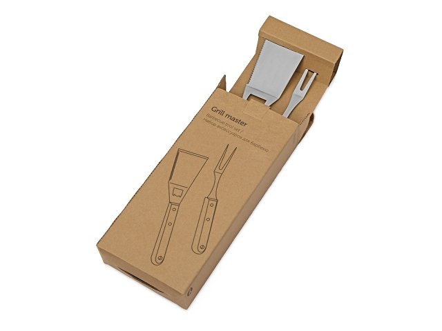 Набор аксессуаров для барбекю "Grill Master" с деревянными ручками состоит из двух предметов: лопатки и вилки. Лопатка также имеет дополнительную функцию - открывалки для бутылок. Набор поставляется в крафтовой коробке с окошком.