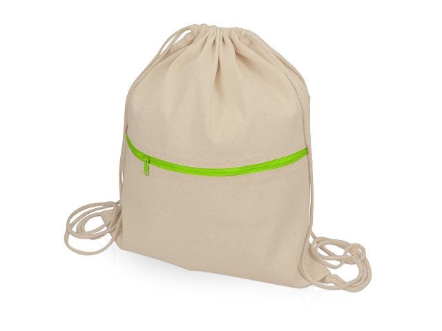 Рюкзак-мешок хлопковый Lark с цветной молнией, натуральный/зеленое яблоко