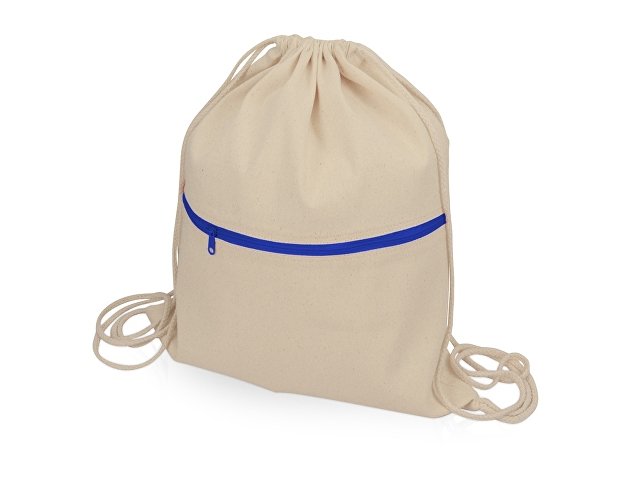 Рюкзак-мешок хлопковый Lark с цветной молнией, натуральный/синий