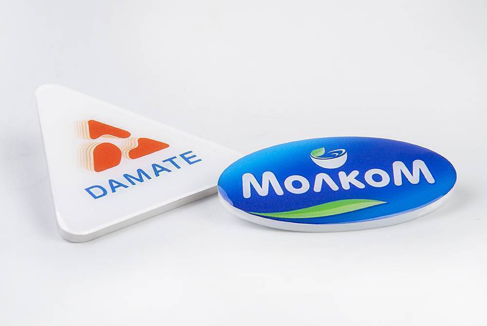 Учитывая материалы изготовления (пленка и эпоксидная смола) наклейка является влагостойкой, защищена от воздействия моющих средств. Объемная наклейка удобный метод брендирования, в следующих случаях: